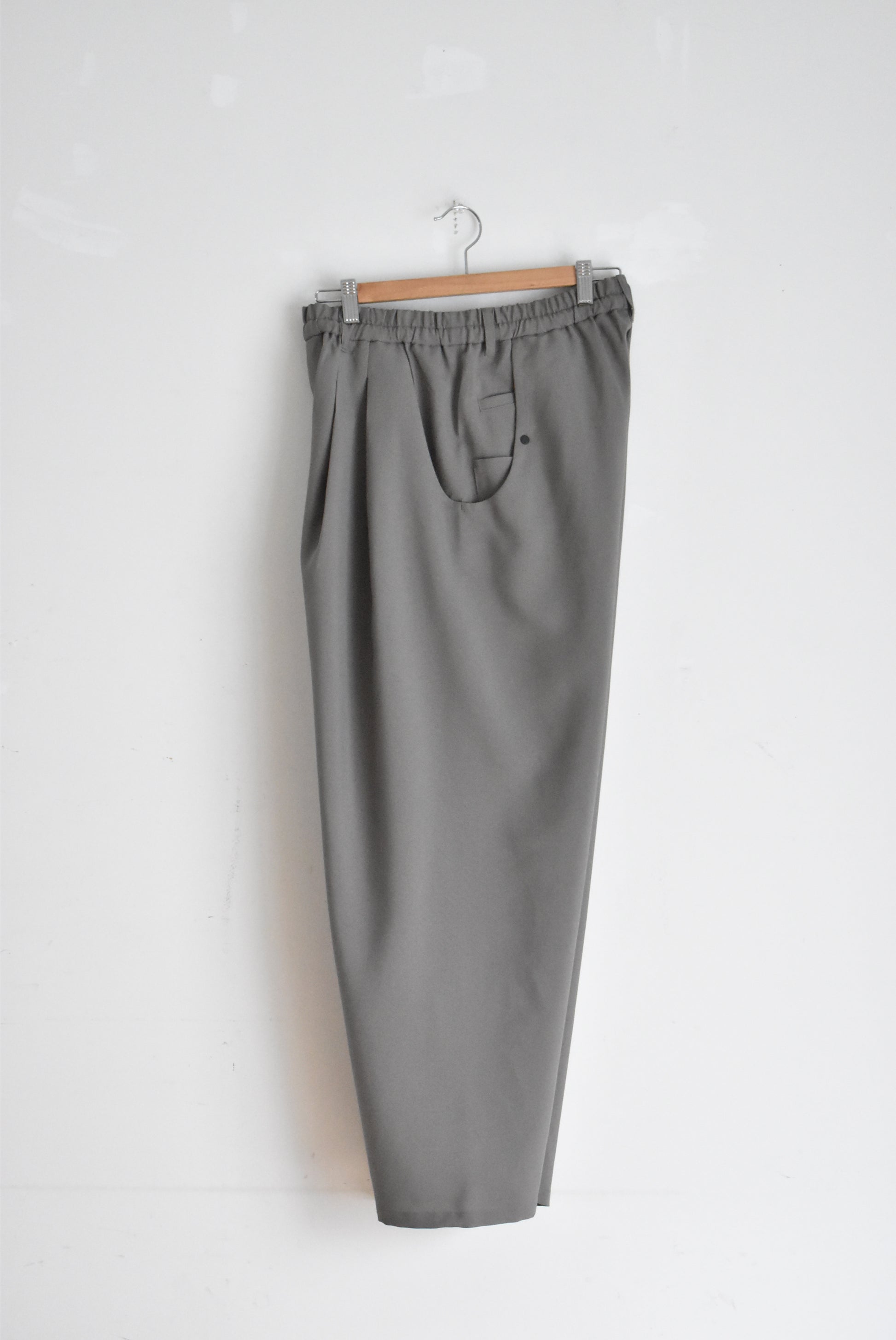 2本のインタックを施すことでヒップ周りにゆとりを持たせ、裾にかけてすっきりとテーパードしたバランス感のあるシルエットに仕上げています