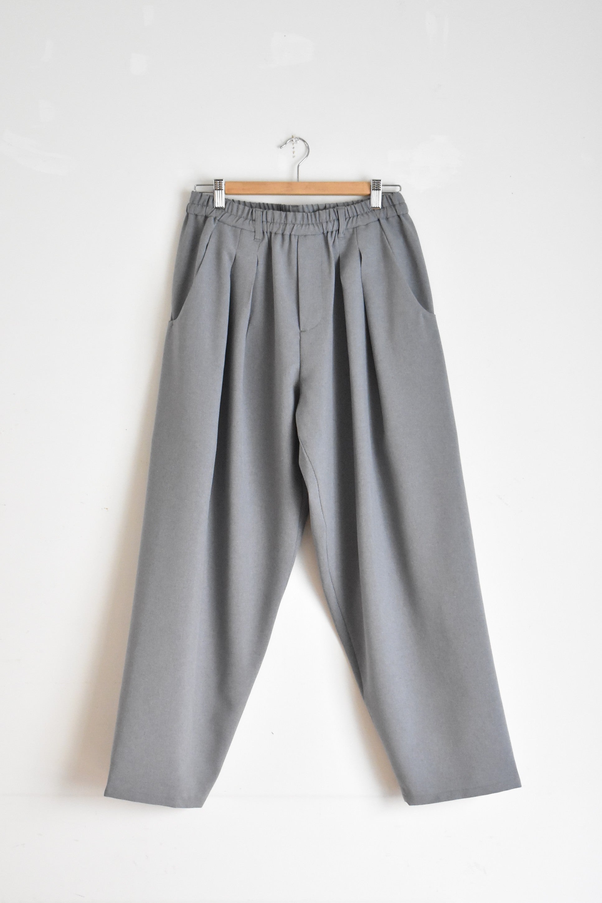 2本のインタックを施すことでヒップ周りにゆとりを持たせ、裾にかけてすっきりとテーパードしたバランス感のあるシルエットに仕上げています
