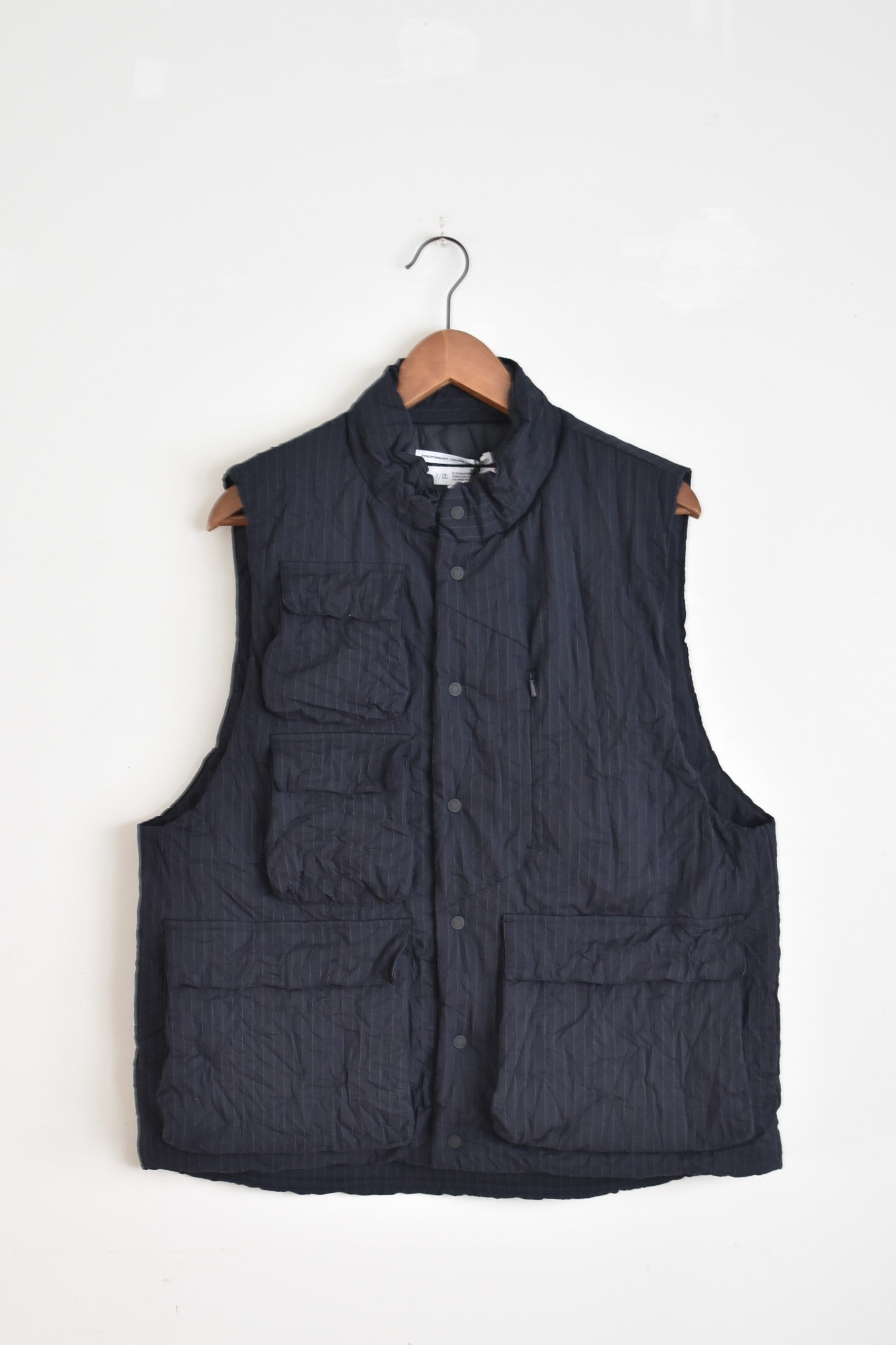 キャッチワッシャーの特殊加工により、シワ加工がモードっぽい印象をあたえる中綿ベスト