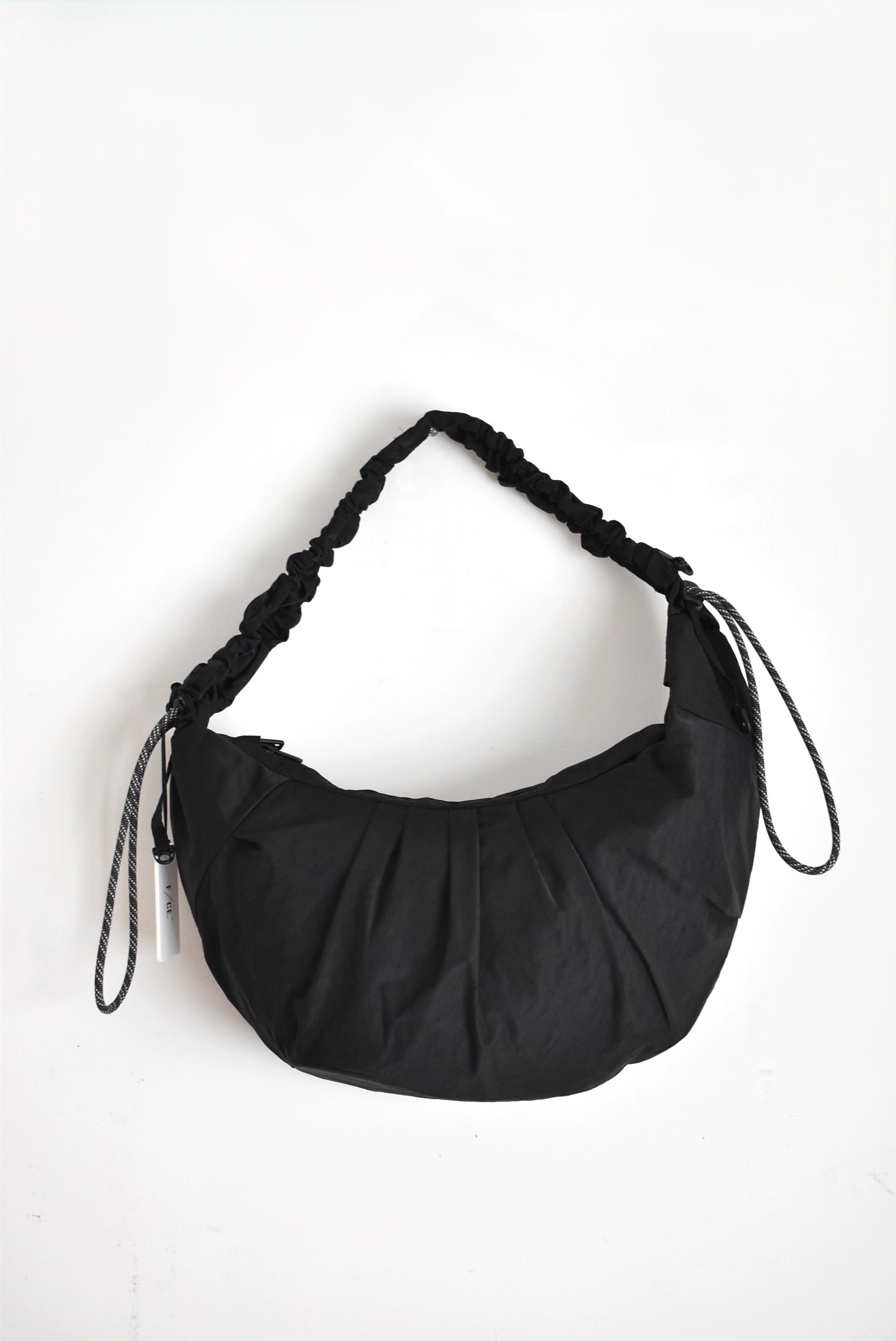 底マチ部分の一部には芯材を入れ、バッグ全体に厚みと彫刻的な構造を持たせることで、既存のボディバッグとは一線を画すデザインに仕上げています
