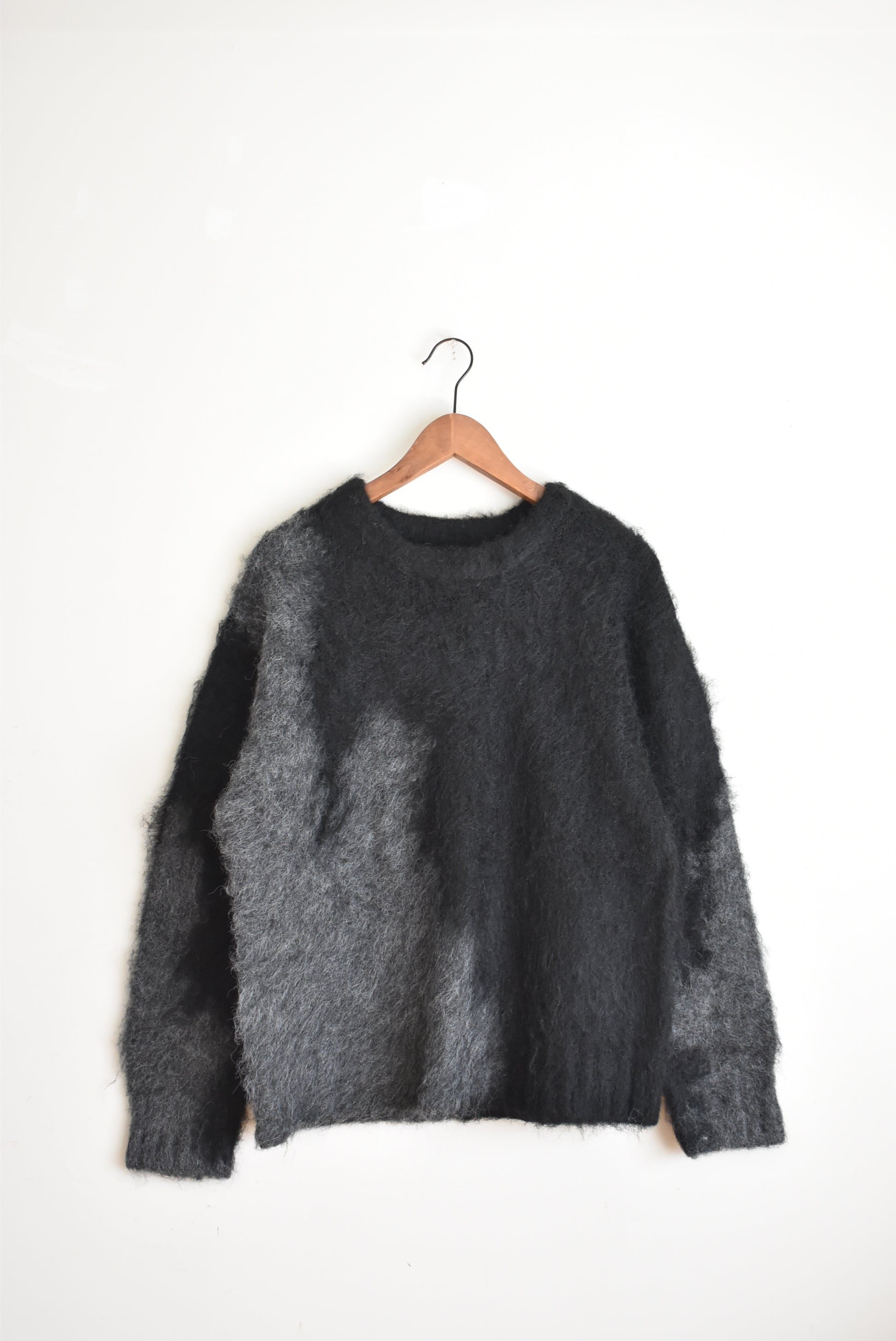 長い毛足でふわっとした肌触りのクルーネックニット