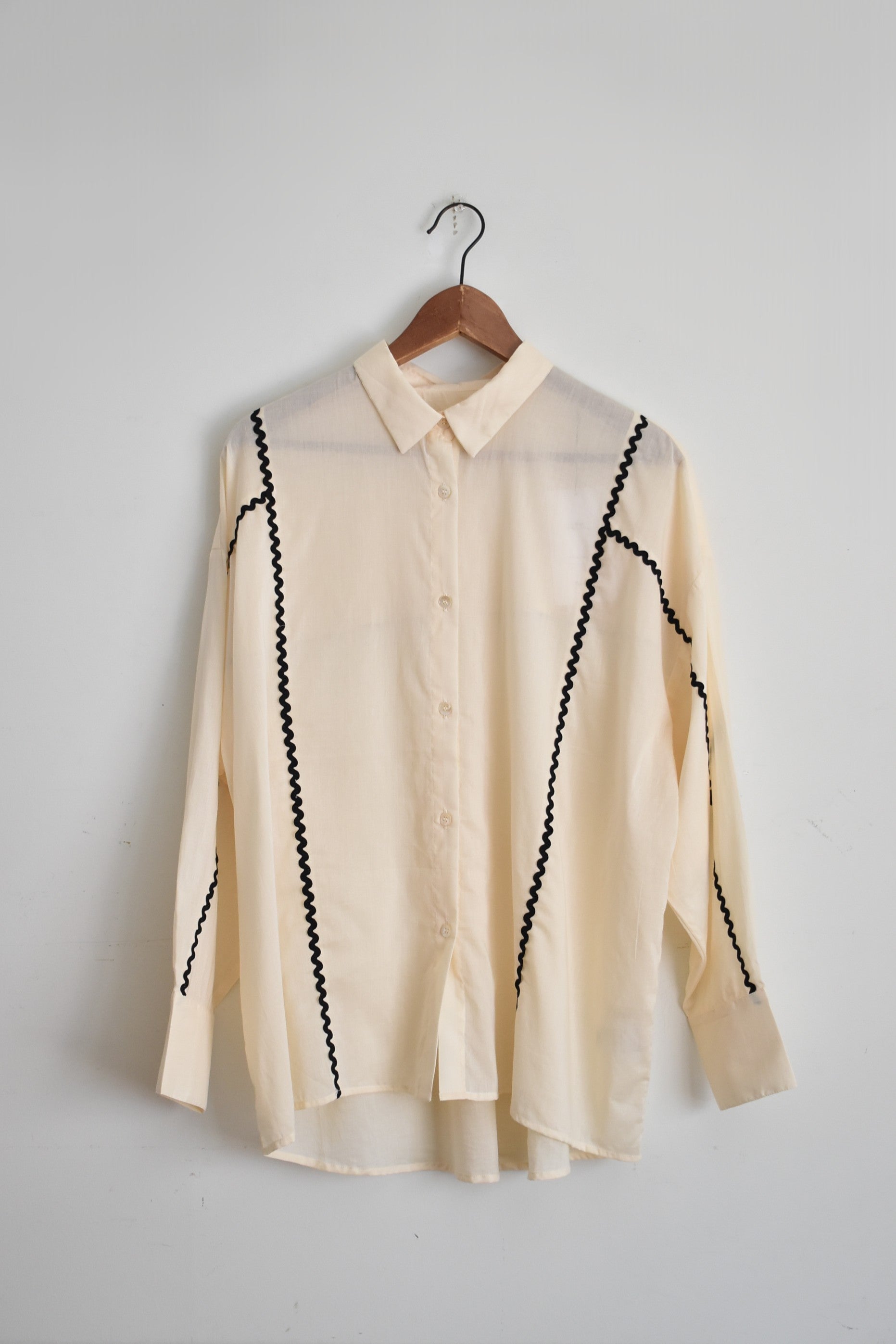 袖と身頃に大胆に施されたラインテープが、シンプルなシャツを一気にモダンな表情へ