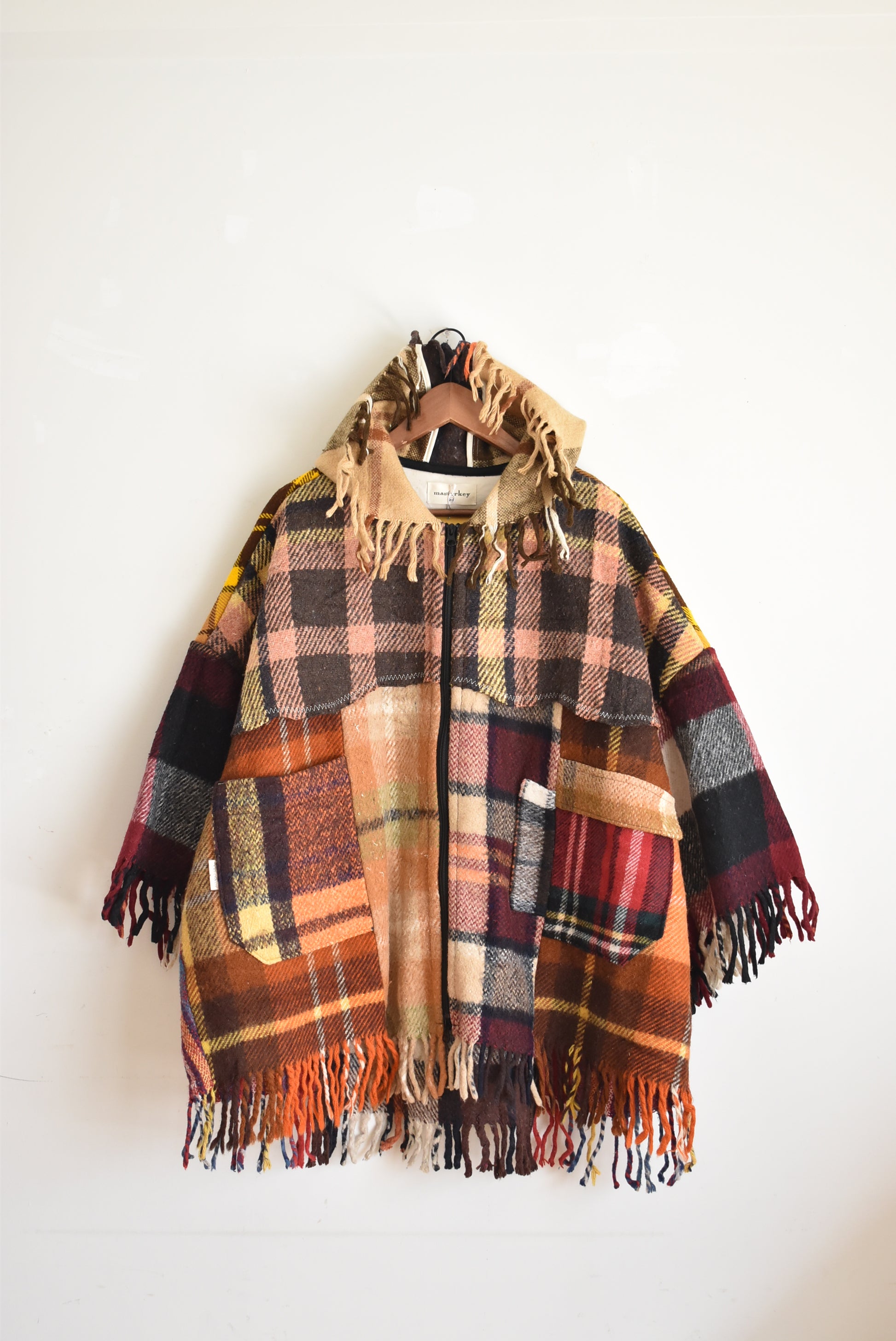 ヴィンテージラグを材料として製作されたリメイクポンチョアウター