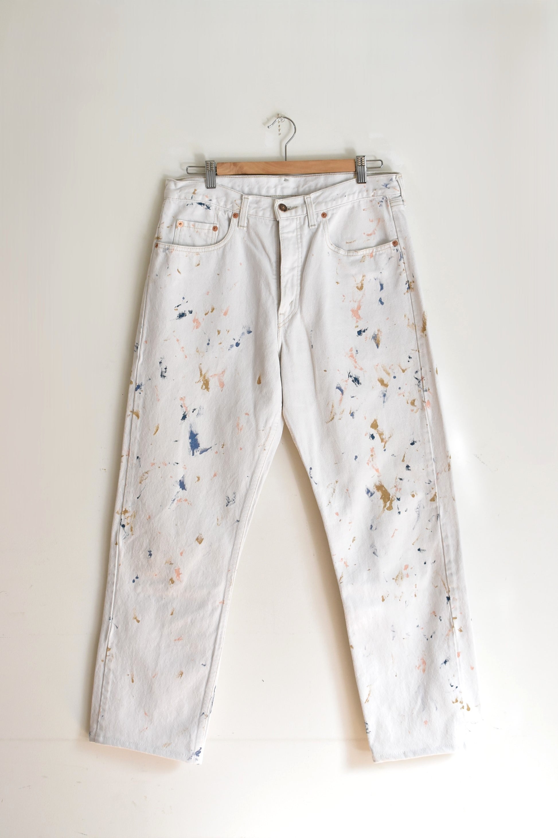 ヴィンテージのホワイトペインターパンツを再現したペンキ加工を施しています